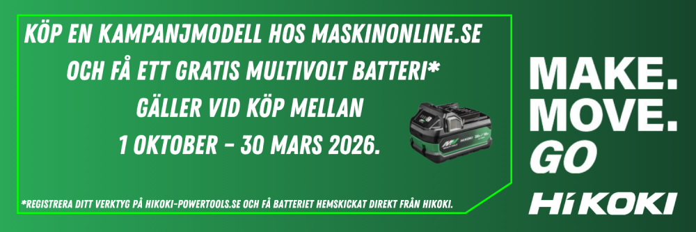 Köp en kampanjmodell hos MaskinOnline.se och få ett gratis Multivolt batteri. Gäller vid köp mellan 20 mars – 30 september 2025.