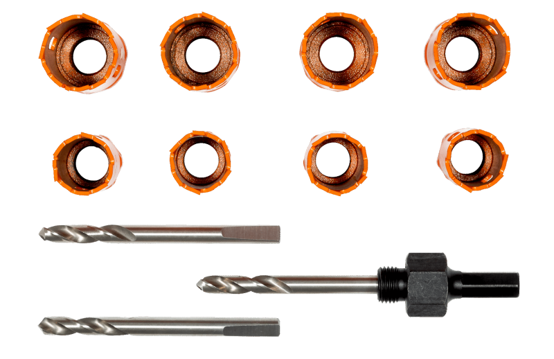 - Hålsågarna passar för sågning i järnhaltiga metaller (stål, rostfritt stål, gjutjärn) och icke-järnmetaller (aluminium, mässing och koppar)