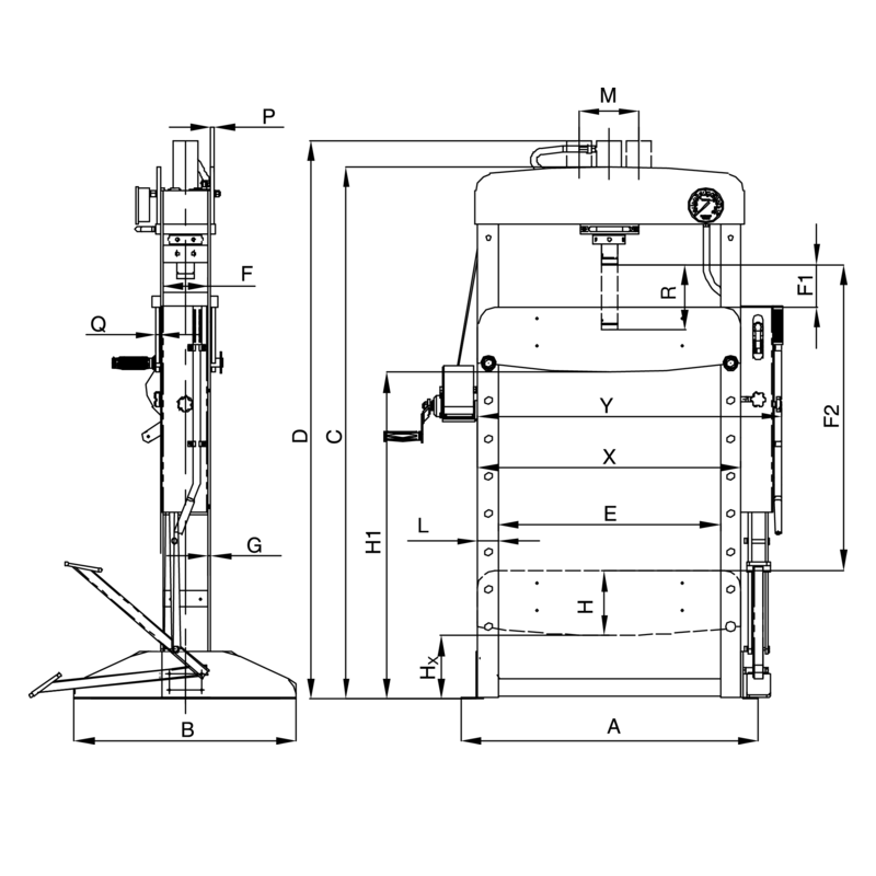 - Enkel höjning och sänkning av pressbordet tack vare vinschen med vridbart handtag