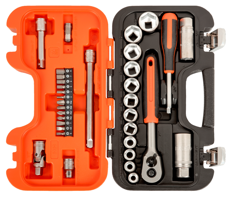 Hylsnyckelsats från Bahco som levereras i en slagtålig väska.