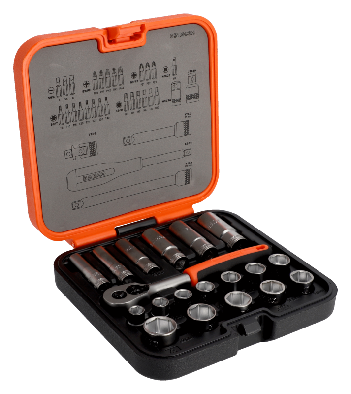 Ny generation av hylsnyckelsats från Bahco. Levereras i en slagtålig väska.