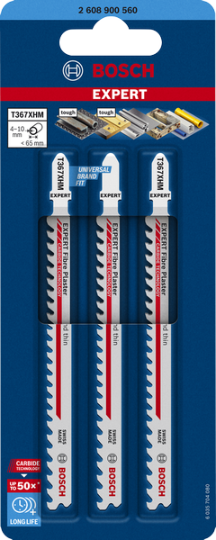 - Håller upp till 50 gånger längre än Bosch T345XF-sticksågsblad