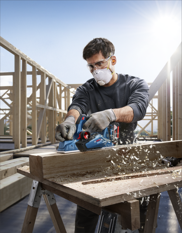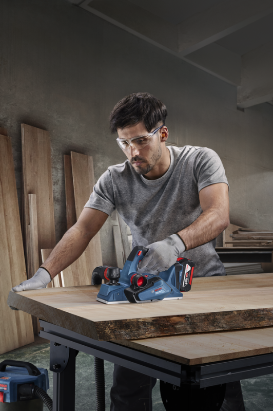 18V. Batteridriven hyvel från Bosch med en motorbroms som stoppar bladtrumman på mindre än en sekund.