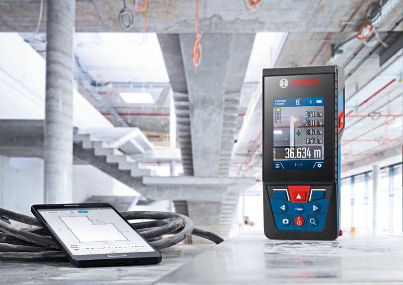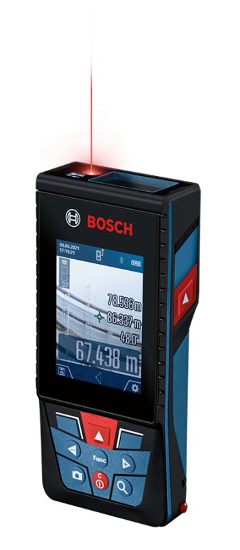 För bekväm dokumentation kan all information överföras via Bluetooth till appen Bosch MeasureOn, eller via USB-anslutning till en dator. Med skyddsklass IP54, reptålig skärm och användarvänligt gränssnitt är denna lasermätare ett praktiskt allround-verktyg för krävande arbetsplatser.