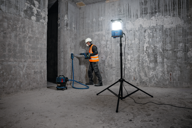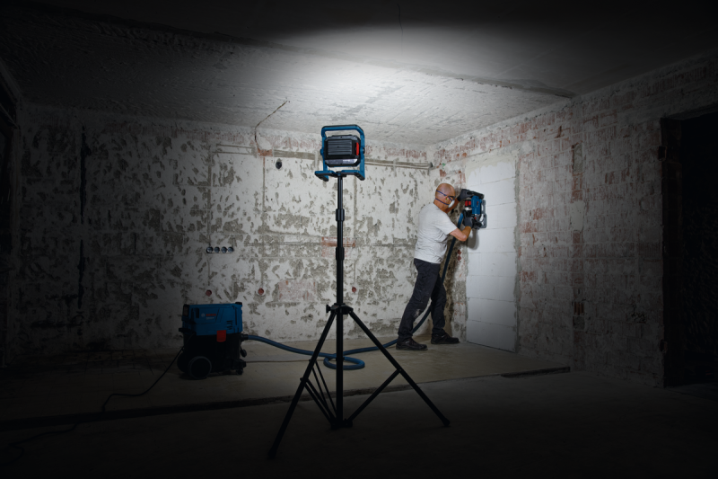 GLT 300-40 Professional lyfter upp en Bosch-arbetslampa till en höjd på upp till 3 m.