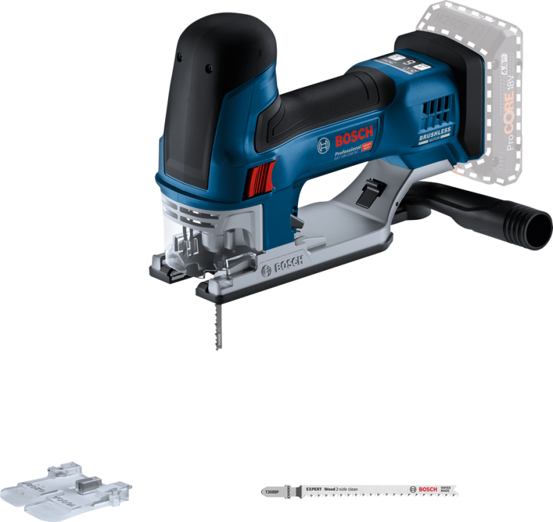 - Perfekt precision: sågbladsskenan förhindrar att bladet böjs, även i vid trånga kurvor