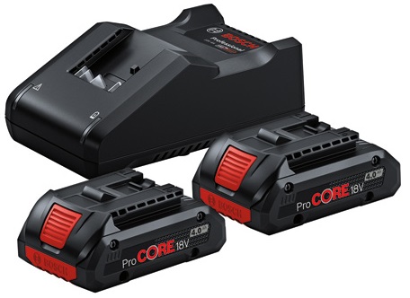 18V. Laddpaket innehållande 2st 4,0Ah ProCORE batterier och laddare från Bosch