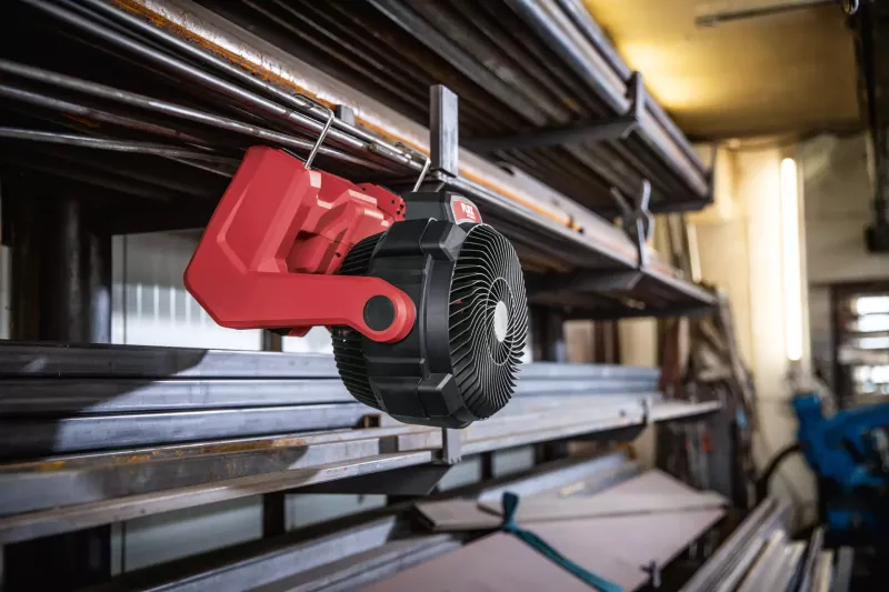 18V & 230V. Batteridriven fläkt från FLEX med stegfri reglering av luftvolym och mjukstart