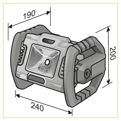 - Kraftfull sladdlös byggplatslampa med två ljusinställningar, 1200 och 2000 lumen