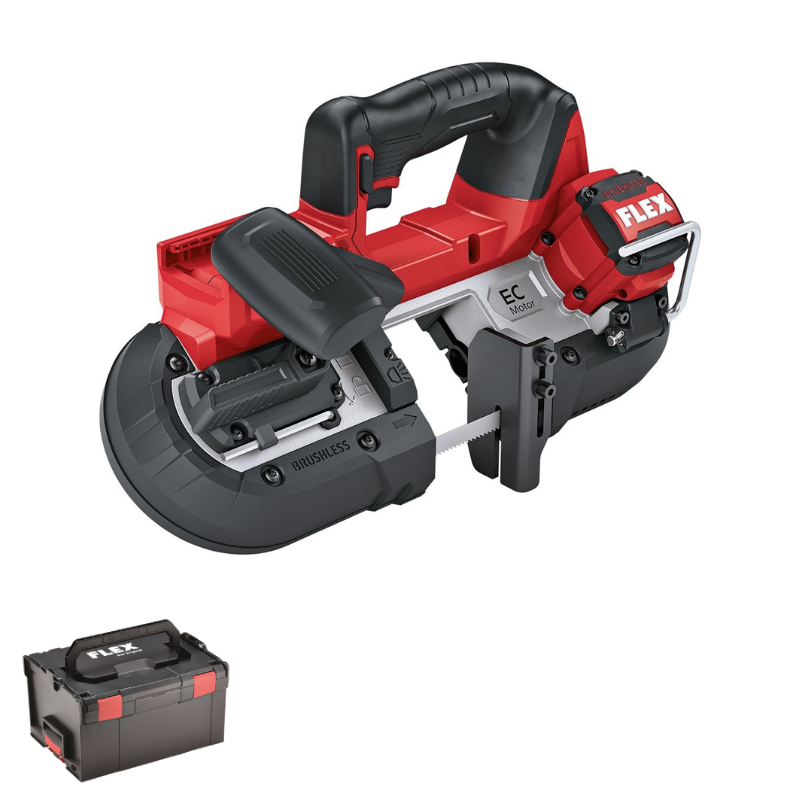 <64mm. 18V. Batteridriven bandsåg från FLEX med en balanserad konstruktion för optimal viktfördelning