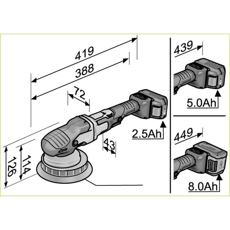 - Lika kraftfull som en kabelpolermaskin under hela batteriets livslängd.