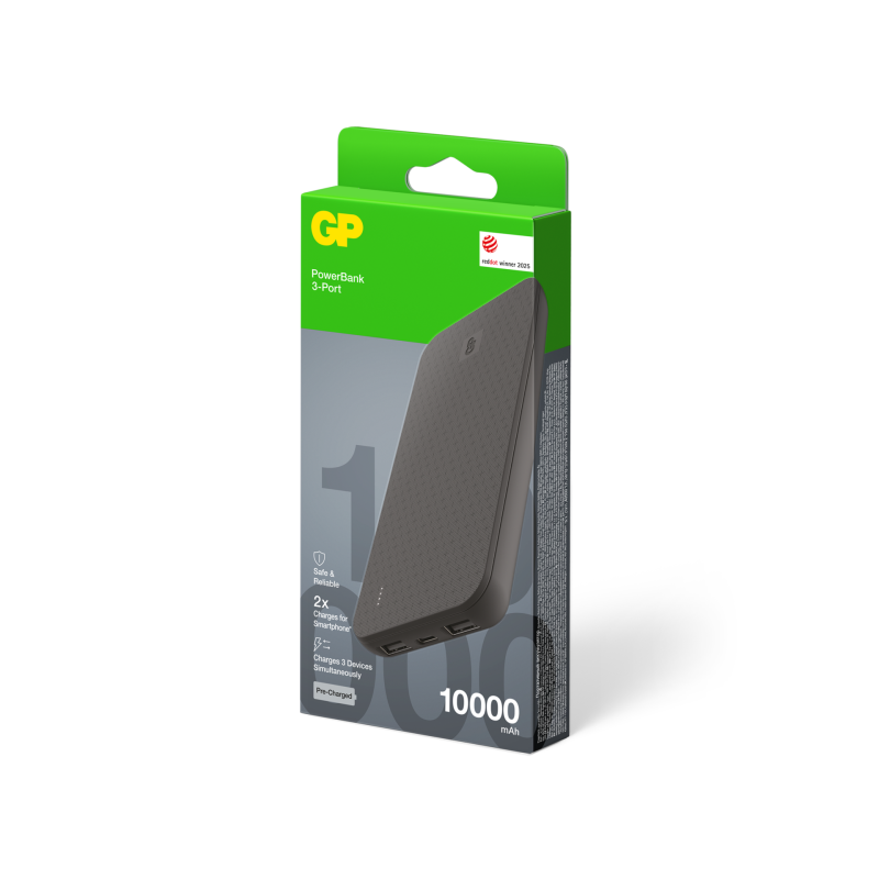 Den nya GP Plus Series Powerbank, 1000mAh, erbjuder pålitlig kraft och stilren design. Kan ladda upp till tre enheter samtidigt.