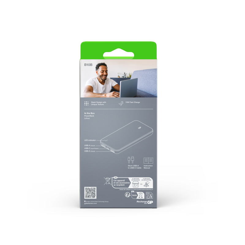 Håll dig laddad var du än är - Med en stor kapacitet på 10 000 mAh kan GP Plus Series Powerbank ladda din telefon upp till 2 gånger*, vilket ger en kraftfull strömkälla för att hålla din telefon laddad när och var du än behöver det.