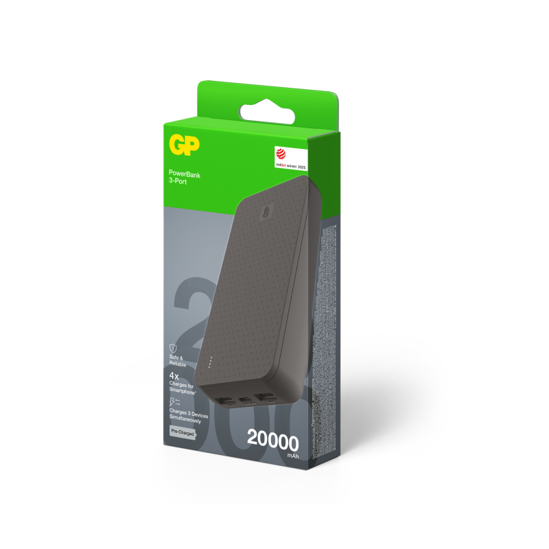 Ladda 3 enheter samtidigt – Håll dig laddad enkelt med GP Plus Series Powerbank, som är designad för att ladda upp till tre enheter samtidigt. Perfekt för dig som är en tung användare – den laddar effektivt din smartphone, surfplatta, smartklocka, hörlurar och mycket mer