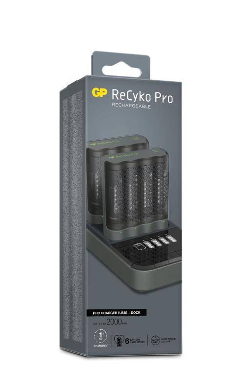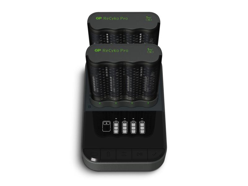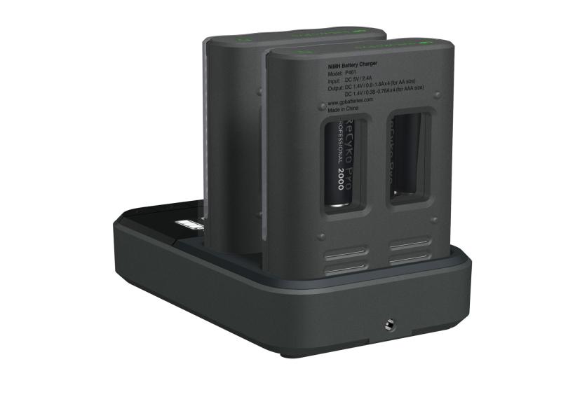 Proffsmodell från GP innehållande 2st laddare, 1st laddstation samt 8st AA uppladdningsbara batterier på 2000mAh.