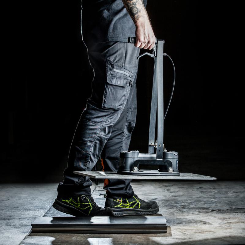 - Förenklar lyft och placering av plattorna samt ger en upprätt ergonomisk arbetsställning.