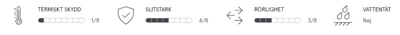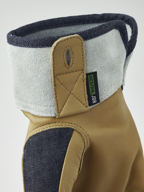 Handens ovansida är i tålig denimstretch med resår på handledens ovansida.