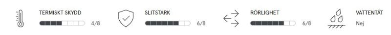 Passformen är förböjd och ett foder i mikrofleece ger skön känsla runt handen. Den har Thinsulate syntetfyllning som är förstärkt med 100 grams fyllning på ovansidan. Medelhög krage med resår runt handleden. Finns även i 5-fingermodell.