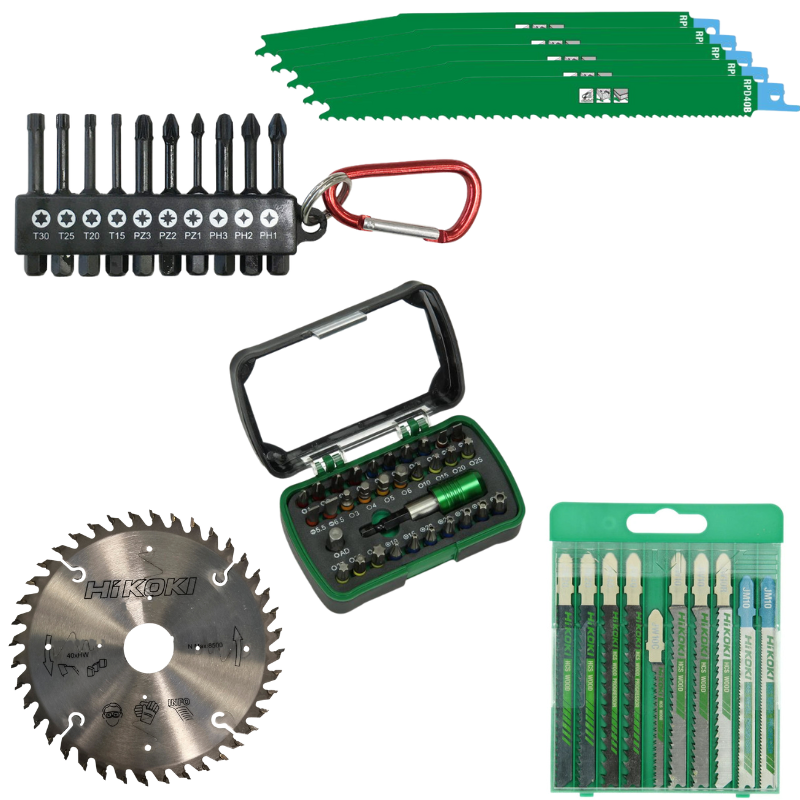 Sammansatt paket med tillbehör som passar maskinerna i HiKOKI verktygspaket mellan med art.nr 68000617-3