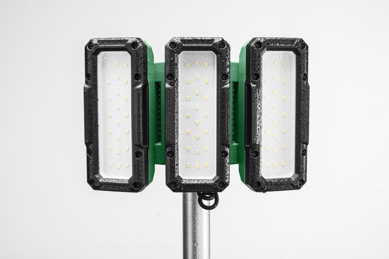 18V. Komplett bärbar arbetslampa, med justerbar höjd från 123 till 215 cm. Kan användas med batteri eller med medföljande nätadapter.