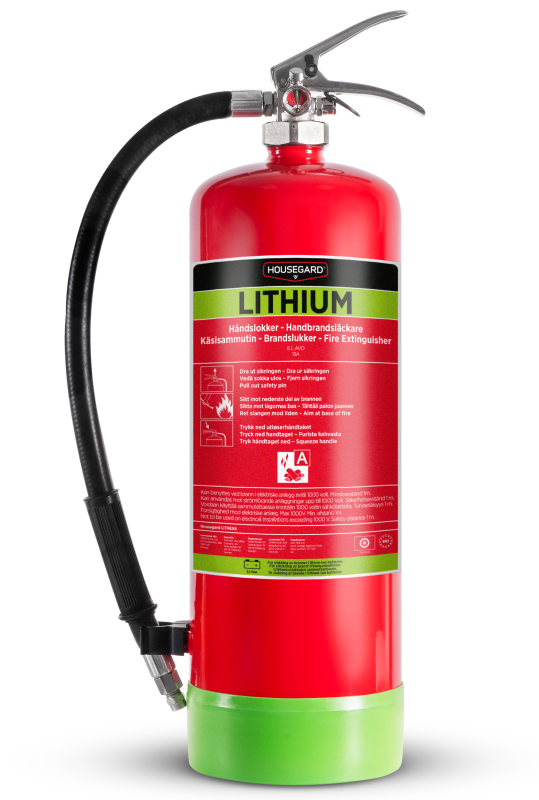 Housegard 6 liters AVD-brandsläckare är framtagen för bränder i litiumjonbatterier och fasta metaller samt för effektiv brandbegränsning.