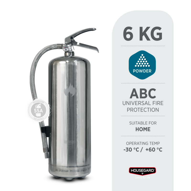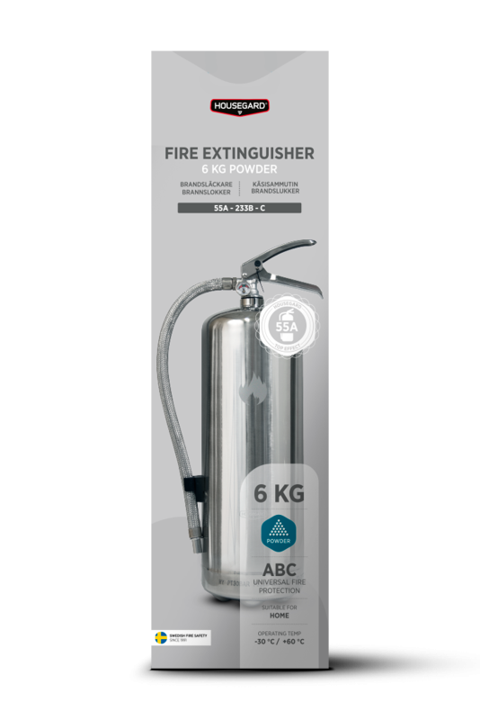 - Housegard 6 KG pulverbrandsläckare har effektivitetsklassen 55A 233B C, den högsta släckeffekten på marknaden.