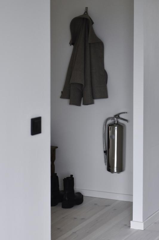 Housegards brandsläckare i stål har en blank finish. För de som gillar den råa industriella stilen är detta ett passande val.