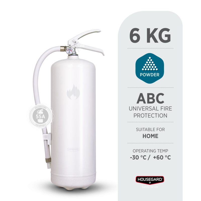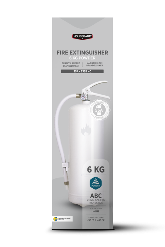 - Housegard 6 KG pulverbrandsläckare har effektivitetsklassen 55A 233B C, den högsta släckeffekten på marknaden.