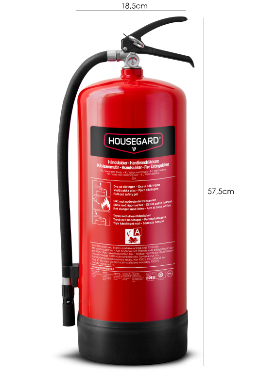 Housegard vattenbrandsläckare används vid släckning av bränder i fasta organiska material som trä, papper och textilier.