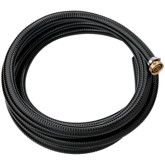 Svart utloppsslang med inarbetad spiral i hård-PVC för anslutning till dränkbara pumpar från Metabo