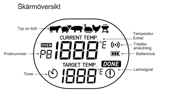Termometern levereras med en temperatursticka som gör det möjligt att även mäta innertemperaturen på kött och annan mat. Ställ in önskad temperatur manuellt eller välj något av de förinställda programmen. På så sätt kan du mäta både pizzastens temperatur och matens temperatur med samma enhet.