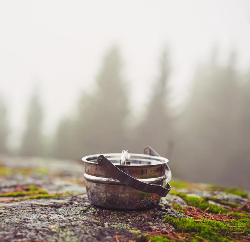 Rymlig och tålig kastrull av rostfritt stål med lock som är perfekt att ta med på utflykten.
