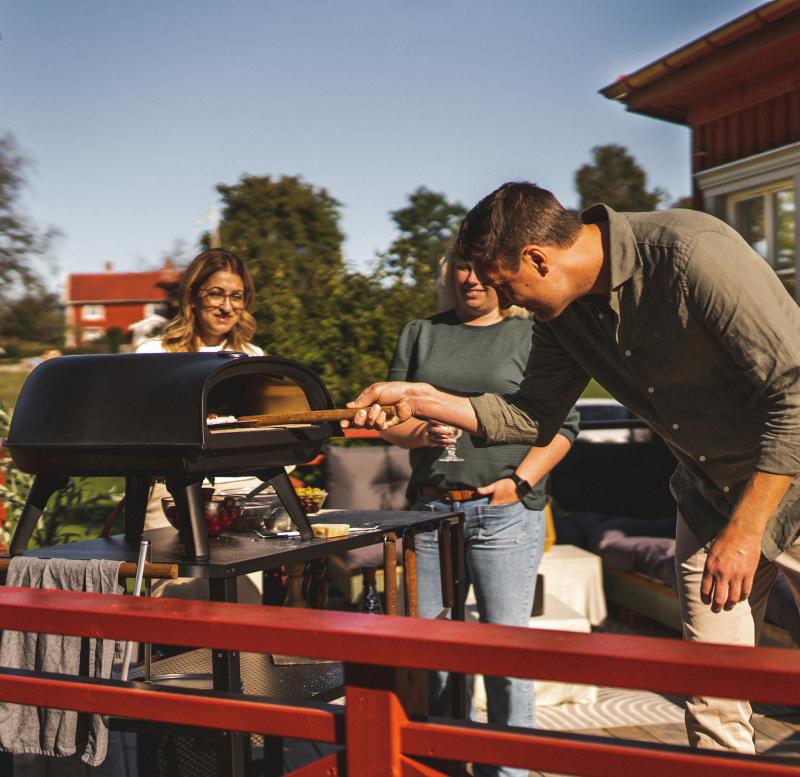Komplettera med Muurikka-tillbehör som pizzaspade, pizzavändare och termometer. Pizzastenen går att ta bort vid rengöring.