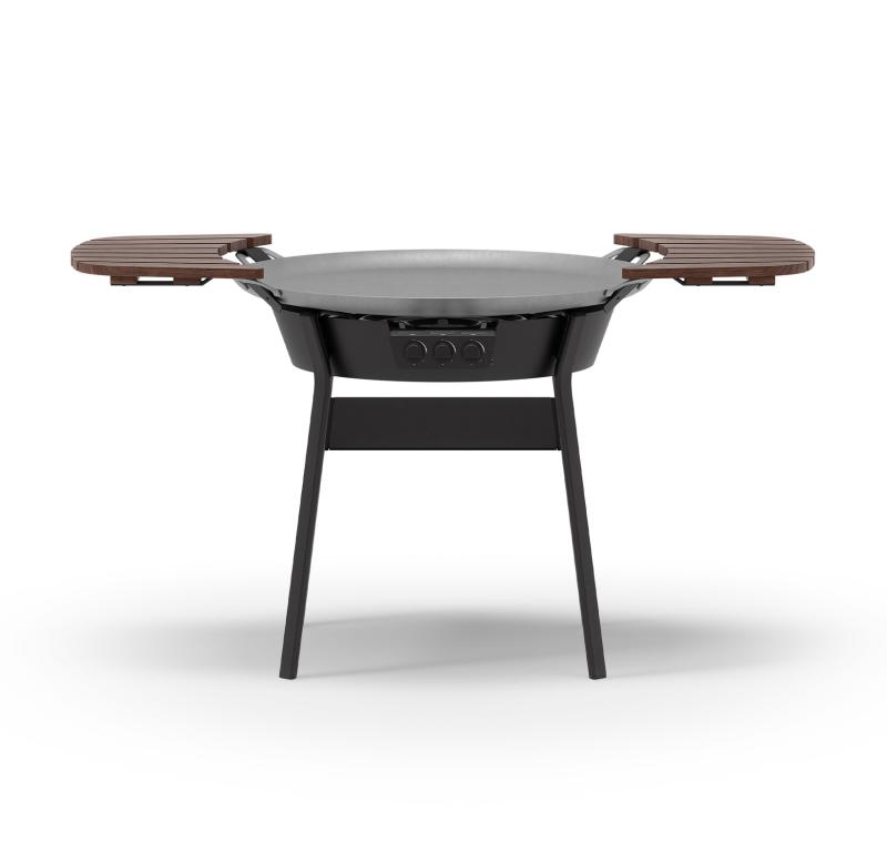 Ett tåligt, hårt och vackert träslag som är värmebehandlat för lång livslängd. Sidobordet är designat för användning med stekhällsset och har dimensionerna 70,4 x 43,7 cm.