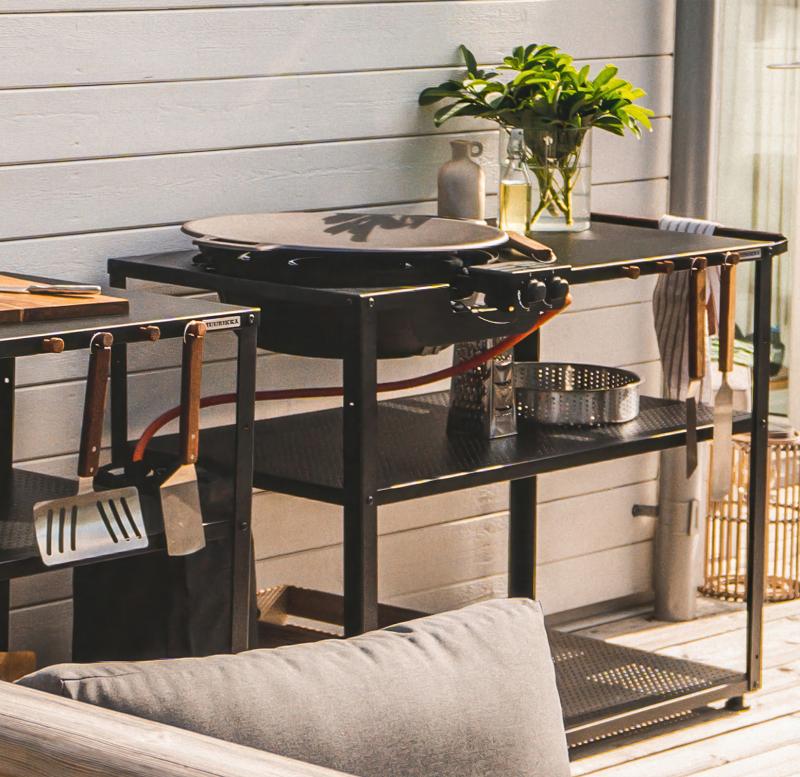 Med generös arbetsyta, gott om förvaring och bekväm arbetshöjd får du en smidig och inspirerande matlagningsupplevelse utomhus.