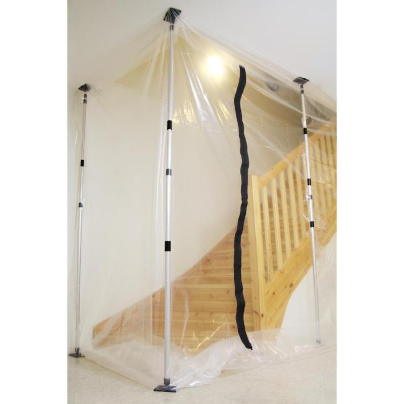 För täckning av dörröppningar vid t.ex. renovering. 2 st raka blixtlås som ger en bred öppning ned till golvet.