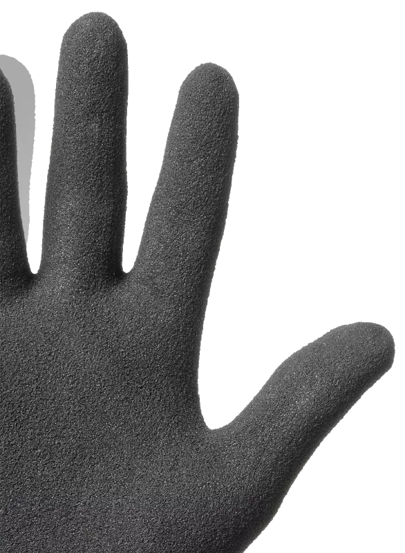 Mycket mjukt nitrilskum som ger utmärkt grepp på torra ytor. Material som andas för komfort hela dagen.Skydd mot kontaktvärme upp till 100°C.