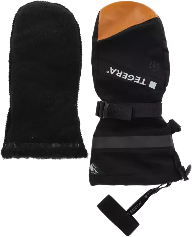 Den är tillverkad av högkvalitativt nötläder med formsydd innerhand och ovansida av vattenavvisande TEGERA® Water Repellent-textil. Handskarna har ett löstagbart ullfoder som är enkelt att ta ut och torka. Ullen absorberar fukt och håller dina händer torra och varma. Handledsrem för säker passform och ett snölås som håller snön ute.